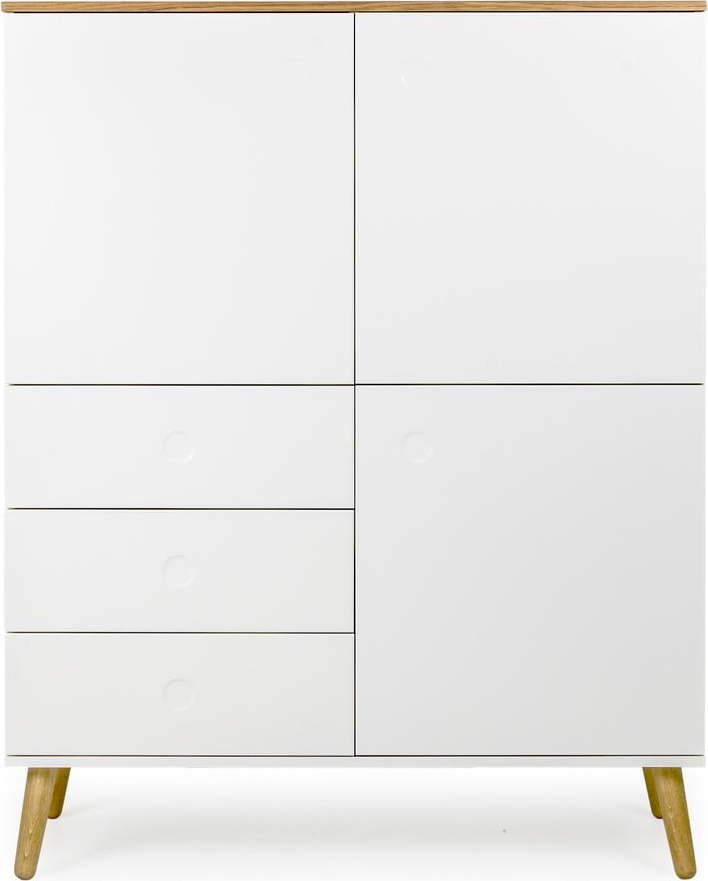 Další informace k produktu: Bílá třídveřová komoda s nohami z dubového dřeva se 3 zásuvkami Tenzo Dot, výška 137 cm