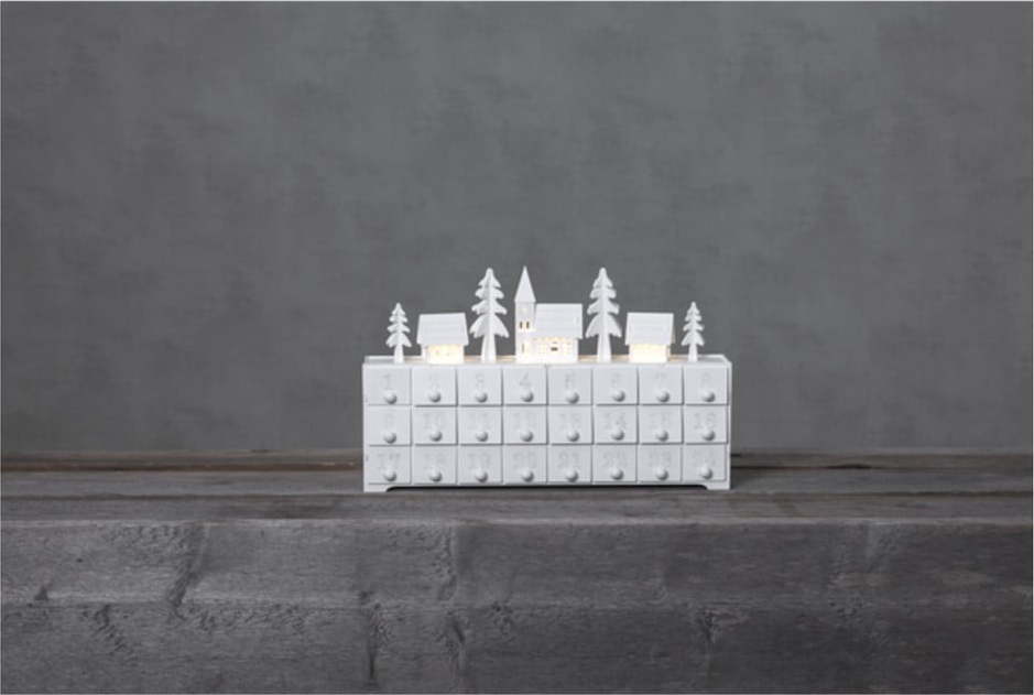 Další informace k produktu: Bílý adventní kalendář s osvětlením Star Trading Yuletide, délka 38 cm