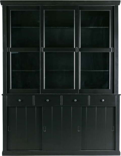 Další informace k produktu: Černá vitrína z borovicového dřeva s posuvnými dveřmi 166x214 cm Lagos – WOOOD