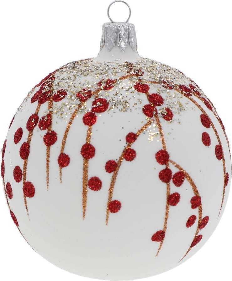 Další informace k produktu: Sada 3 bílo-červených skleněných vánočních ozdob Ego Dekor