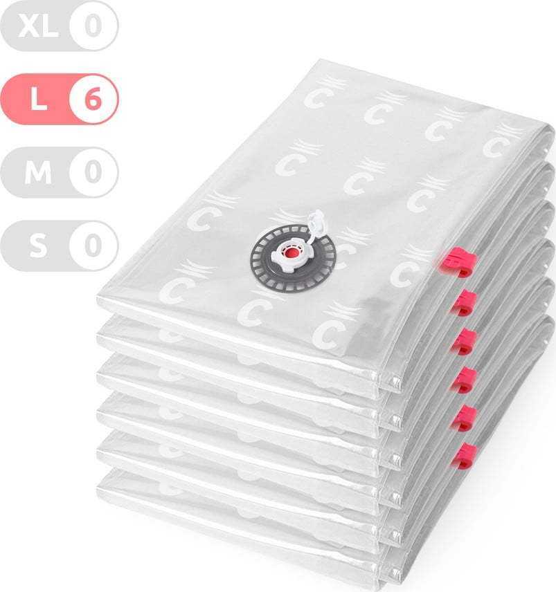 Sada 6 vakuových úložných obalů na oblečení Compactor Large Vacuum Bags, 80 x 100 cm od oblíbené společnosti Compactor - tento artikl nakupujte za úžasnou cenu 849 Kč. Upozorňujeme, že nabídka má omezenou platnost. Garantujeme spokojenost z nákupu.