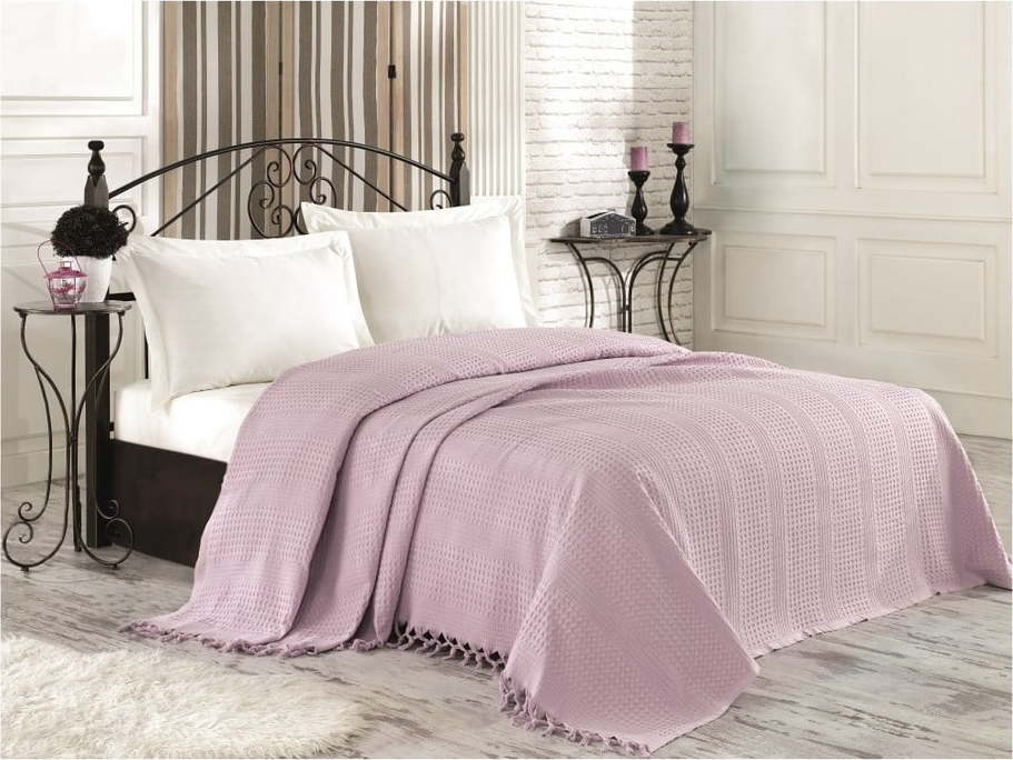Další informace k produktu: Světle fialový bavlněný přehoz přes postel na dvoulůžko Tarry, 220 x 240 cm